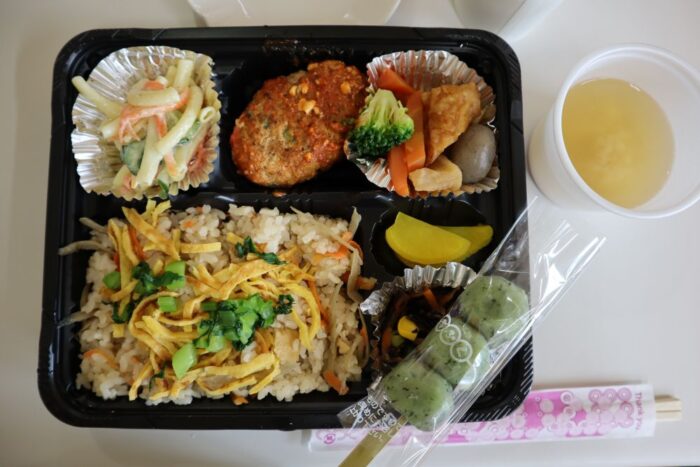 近隣の喫茶店「あぜりあ」さんに毎年お花見弁当をお願いしています。約60食、しかも手作りですので、朝から大変だとは思いますが、いつも快く引き受けてくださっています。