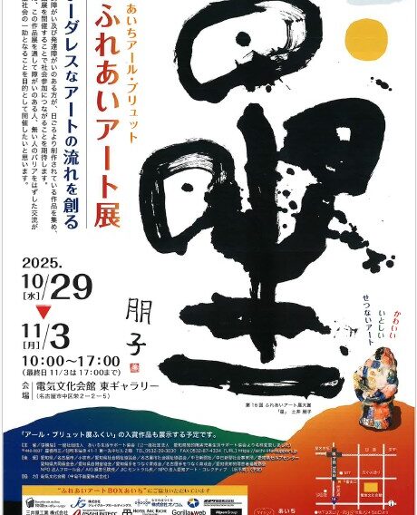 ふれあいアート展 2025年10月3日 10月29日(水)から11月3日(月)まで、電気文化会館 東ギャラリー(伏見)にて『フロール回顧展』が開催されます。 名東福祉会からは13名の作品が展示されます。 是非ご観覧ください。 Categorised in: アート(創作活動), ブログ written by 事務センター コメントを残す コメントをキャンセルメールアドレスが公開されることはありません。 ※ が付いている欄は必須項目ですコメント ※ 名前 ※ メール ※ サイト 次回のコメントで使用するためブラウザーに自分の名前、メールアドレス、サイトを保存する。 上に表示された文字を入力してください。 <<前の投稿へ