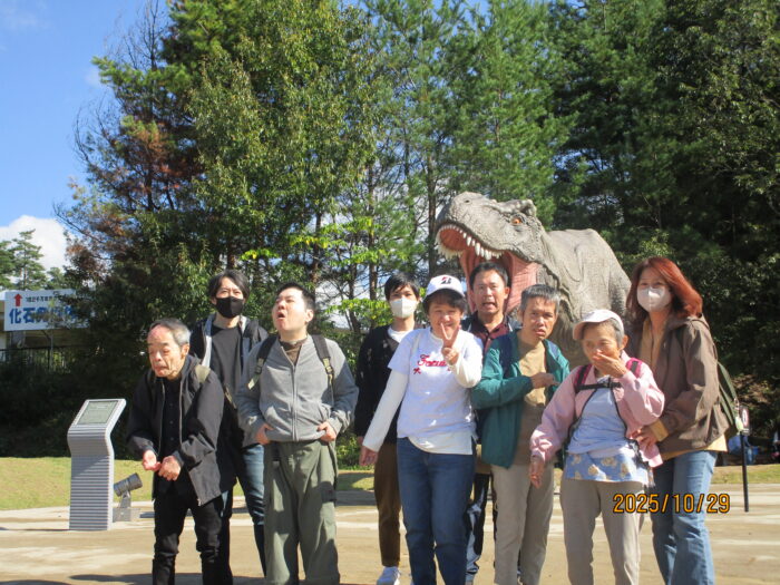 今年度のバスハイクは3つにグループに分かれて実施しています。昨日は2番目のグループが福井県立恐竜博物館に行ってきました。途中で通行止めの道路があり、予定よりも1時間以上遅れての到着となり、利用者の皆さんに迷惑をかけてしまいました。ただ、そのあとはお弁当を食べ、順調に博物館内の見学をすることができました。