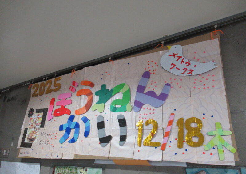 利用者の方と事前に作製した看板を見るたび、「あと少しで忘年会だね」「何がでるかな」と期待が高まるのが伝わってきました。